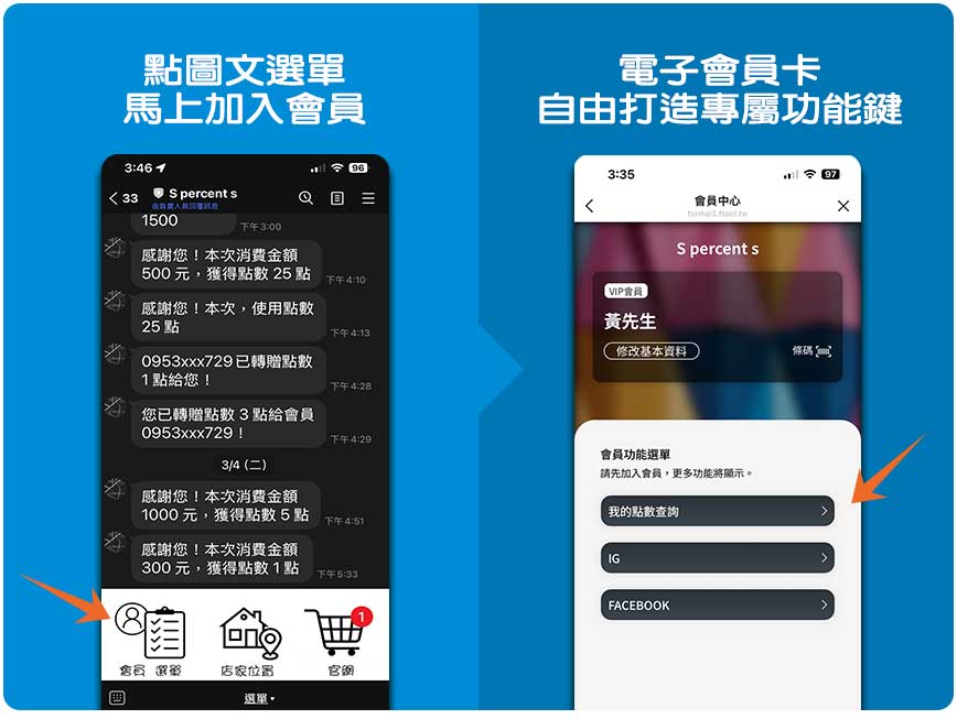 客戶只要報電話,就可以馬上集點,獲得點數馬上收到訊息通知